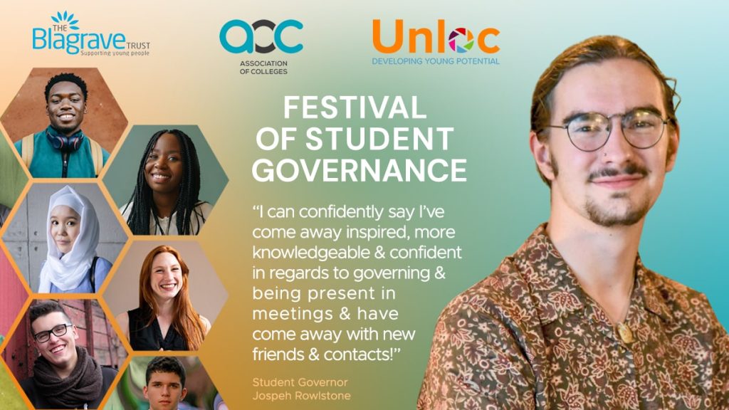 “Hey there! My name is Joseph Rowlstone, I’m a third year catering student and Student Governor of the East Kent Colleges Group, and recently I had the honour of being involved in the Festival of Student Governance 2022, hosted by Unloc during the Association of Colleges Annual Conference in Birmingham.