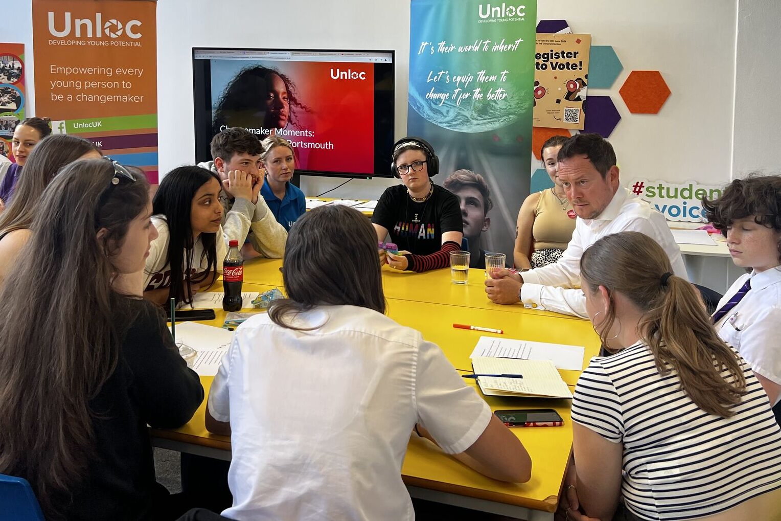 Events were held in our Changemaker Studios: Westminster space and also in our Changemaker Studios: Portsmouth space, where respected members from the Labour Party, The Conservatives, The Green Party, The Liberal Democrats and Reform UK agreed to take part and face tough questions from young people in person. These events were the brainchild of Unloc’s Youth Board – instead of a traditional hustings or question time event, they wanted to give young people dedicated time with candidates in small groups, enabling discussions and conversations that go beyond the soundbites.