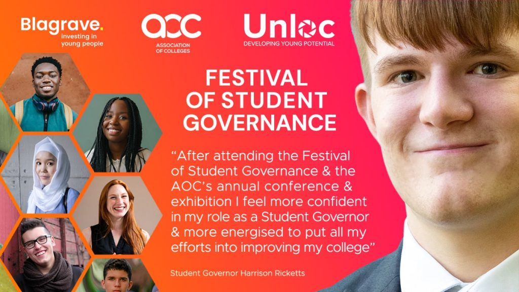 Our dynamic Festival of Student Governance is back for 2023! Our annual event in partnership with the Association of Colleges, and supported by the Blagrave Trust returns to the Birmingham ICC on the 13th and 14th November, welcoming Student Governors, Principals and College Clerks from across the UK.